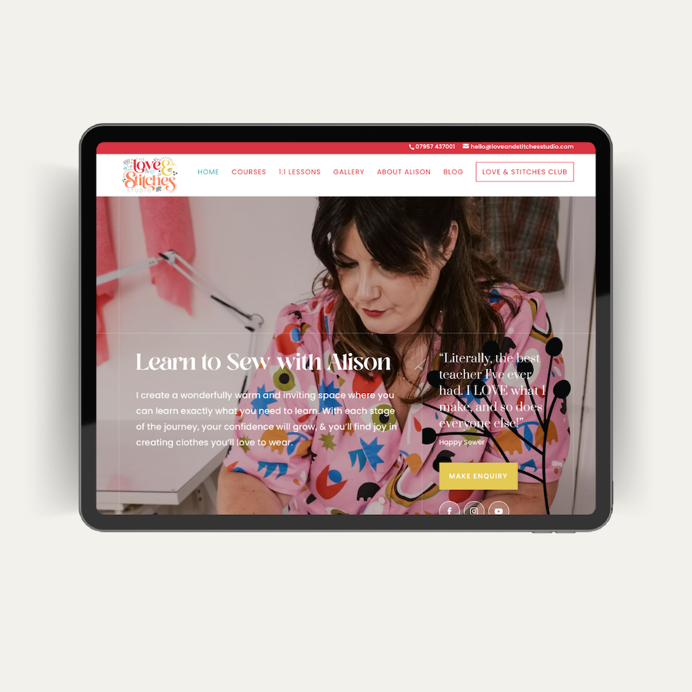 A complete rebrand and web redesign for Alison’s successful sewing school, which pivoted into an online sewing club during lockdown and has since flourished. She needed a brand that captured her industry expertise, vibrant personality, and the fun, engaging nature of her classes, both in-person and online.