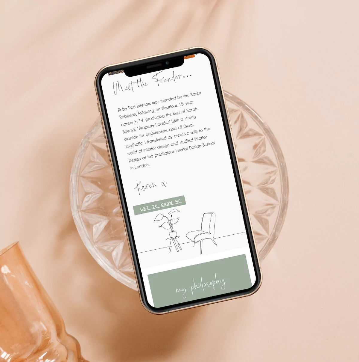 A full rebrand and website overhaul for a successful interior designer whose previous branding didn’t reflect her style or attract the right clients. Karen is now proud to be the face of her brand, she’s confident in showcasing her unique vision and drawing in clients who truly align with her aesthetic.